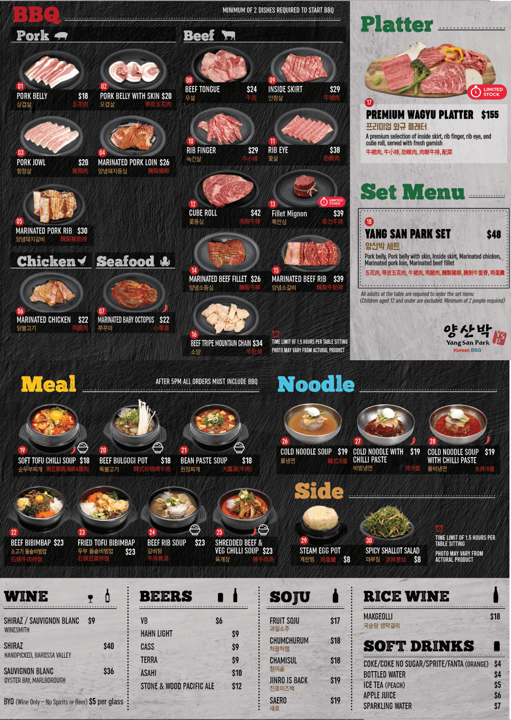 Yang San Park is Korean BBQ the way it should be. Sit back, catch up with friends, and let our team grill every cut to perfection at your table. All you need to do is enjoy the food and the company.